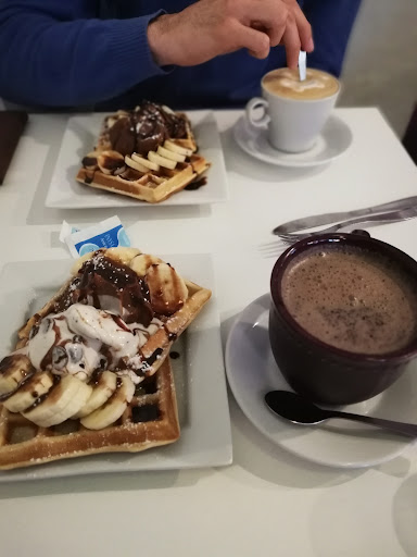 Read morePedimos waffles con chocolatada y café con leche. Pasaron 50 minutos desde que entramos hasta que nos trajeron el pedido. El local luce sucio, hay cable-canales despegados por todas las paredes. Hay telarañas en la pared que tiene frascos con plantas (que lucen bastante mal dicho sea de paso). Hay un ventilador de techo muy sucio también. El techo tiene un buraco negro. La pared violeta tiene cuadros desteñidos por el sol. Uno de los waffles llegó sin el brownie que estaba en la carta, ante el reclamo llegó 10 minutos después una chica con excusas y cubitos de un brownie sobrecocido. Los wafles estaban bien, el dulce de leche repostero no es de mí agrado en una preparación así, la chocolatada XL no era muy grande ni estaba muy rica. La temperatura del café era demasiado alta. El local es chico y hay mucho ruido, las mesas de aglomerado no tienen tapacanto por lo que sus bordes raspan y te clavan espinas. Demasiadas cosas que mejorar. Respondo a la dueña: Mil disculpas por irme después de pasar dos horas en el local, tenés razón en todo, está súper limpio, el servicio es rápido y la comida genial. Somos unos tarados nosotros. Muy difícil mejorar desde arriba del caballo enojandote con los clientes. Que te...