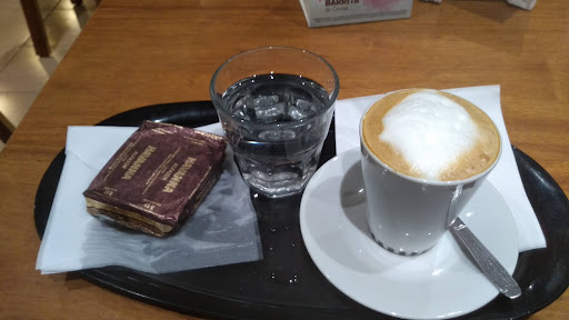 Cafeteria que sigue la temática visual de las cafeterías de la marca Havanna. Al llegar el lugar estaba bastante concurrido, aproximadamente había diez mesas ocupadas, según accedes a esta cafetería sobre la mano izquierda tienes una larga hilera de mesas y extenso banco que recorre todo lo largo del salón. El banco cuenta con almohadones cómodos. Las mesas de ese sector son para cuatro clientes. Llama la atención la presencia de columnas en el centro del salón, eso genera la sensación de que las mesas que están al fondo, queden lejos de la visión desde la puerta de acceso al local. En el lado derecho está la gran barra donde se elaboran y se sirven todos los productos. Cuenta con la característica alacena dónde se exponen toda la gama de productos de la marca. Con la presencia de la barra el espacio que ocupa el salón sigue siendo amplio habiendo un aforo aproximado de 20 mesas para cuatro y dos clientes, en total. La iluminación es un tanto escasa, y la tonalidad oscura de las paredes y el techo incrementan esa sensación. La barra está iluminada con un conjunto de lamparas de media esfera cromadas con interior amarillo, eso genera un nivel óptimo de iluminación en dicho sector. En la zona de la barra se encuentra la heladera expositora de productos, como por ejemplo tortas. Respecto al producto, pedí el combo de cortado en jarrito y un alfajor. El café estaba bien servido cortado fue servido en tamaño jarrito, el equilibrio de café y leche era óptimo, la temperatura adecuada y el gusto bueno, tenía bastante espuma la leche, particularmente no es que me importe mucho ese detalle, pero creo que está bien destacarlo para quien le pueda interesar. En general esta cadena prepara buenos cafés, en algún momento averiguaré que procedencia tiene. El alfajor que comí se denomina alfajor de Mousse, la tonalidad del envoltorio es marrón. Al probarlo he de decir que me gustó sin más. Es una propuesta original, las tapas del alfajor estaban un poco duras y el interior un poco blando por lo que al realizar la mordida tiende se tiende a escurrir hacia los costados el relleno. En cuanto el gusto, la capa externa del alfajor recubierta de chocolate es similar a todos los alfajores de la marca, la diferencia está en el sabor de relleno, tiene la contextura semejante al mousse, me recuerdan mucho a otra marca de alfajores más económicos que suerte estar en todos los supermercados. El sabor es decididamente dulce, en conjunto es un alfajor que empalaga, a aquellos que quieran probar algo diferente y huir de la constante presencia del dulce de leche, está es una opción respetable. El conjunto del pedido fue servido en una bandeja de plástico negra de forma eliptica, además del Alfajor y el café, estaba acompañado por un vaso de agua con gas, dos servilletitas y una galletita de chocolate de cortesía. La atención fue buena, a pesar de lo concurrido que estaba el lugar, las dos empleadas se encargaban de atender las necesidades de los clientes con solvencia, se le veía siempre activas y se notaba un trato cercano y amable. Los bañor estaban limpios, sin mayores detalles que reseñar, quizás sería aconsejable aggiornarlos un poco. Para acceder a ellos hay que ir hasta el fondo del salón en la zona central. Hay un pasillo de distribución alargado de color marrón que acceso a cada uno de los baños. La sensación percibida fue buena. Lo más destacable es la calidad del producto,el hecho de que halla una promoción de alfajor más cortado permite disfrutar de estos productos estrella de la marca a un precio asequible. El servicio bueno. La experiencia...