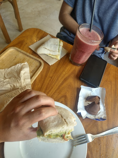 Venden un sandwich hecho de masa de panqueques que viene supuestamente tostado (húmedo).. de las 5 variedades que hay para elegir solo tienen una. Pedí el de pollo con palta que viene sin palta (es una pasta con gusto a) y para culminar dice que viene con papas bravas (papas bastón de paquete) hechas al horno (carentes totalmente de gusto). Por suerte viene con bebida (que estaba caliente). La estrella por servicio la pongo porque el camarero que me trajo el pedido fue rápido y atento (no así el que cobraba que parecía que me estaba haciendo un favor en acercarse a la mesa). Para terminar esta grata experiencia antes de irme procedo a ir al baño, el cual estaban limpiando y también tuve que esperar para usar hasta que "se seque el piso". No vuelvo maaaas 🤗, no pierdan el tiempo en supuestas opciones de almuerzo, nefasto.