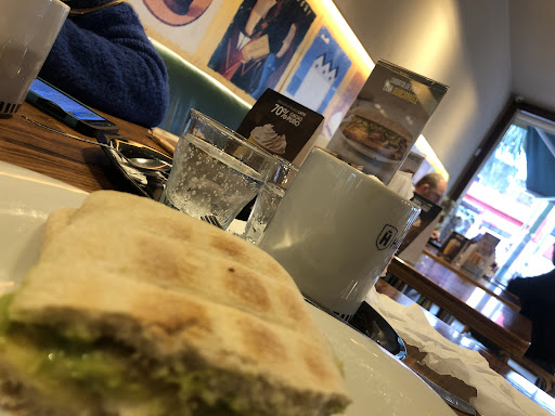 Atención: las chicas que atienden son efectivas. Sólo aparecen cuando un pide, y para traer y retirar los platos. Buen trabajo. Platos: me pedí una Ciabatta de pollo con guacamole que realmente te estaba muy bien. Quizás la temperatura podría estar más elevada, pero el sabor exquisito lo superó. Plato muy recomendable. Precio: con la inflación que hay en este país gobernado por el neoliberalismo es difícil saber si es caro o no, pero para lo que representa hoy, es un precio aceptable para este tipo de locales. Ambientación: la iluminación es perfecta. Tiene una mezcla de intimismo y calidez típica de los mejores locales de Havanna. Habría que mejorar el patio del fondo del local. Está en construcción y su aspecto desentona con el resto. Baños: limpios y accesibles. El olor a lacandona denotaba que recientemente habían sido limpiados. A pesar de lo fuerte de ese aroma, es un punto muy destacable la...
