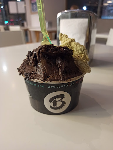 Read moreVisité muchas heladerías con el fin de hacer la correspondiente Review,y hoy me llevo una grata sorpresa con Buffala Helados Puedo decir que está en mi podio junto con Rapanui,Cadore y La Mantequeria Las Heladerías de 5 Estrellas son contadas con los dedos de las manos en Buenos Aires,son pocas las que hacen las cosas bien en otro nivel y Buffala es una de ellas La heladería se ubica en el barrio de Recoleta, zona tranquila,difícil para estacionar,pero muy de barrio A simple vista es una heladeria más, no dice nada,pero su producto es fantastico La atención es buena, los chicos que atienden son muy amables,y te dan gustos para probar si así uno lo solicita La presentación de los gustos esta muy bien lograda en recipientes de acero inoxidable,lo cual permite ver el sabor a elegir El helado es súper cremoso,denso,y tiene particularmente un gusto diseñado por una famosa influencer (@lachicadelbrunch) que se llama Matilda y es un gusto tremendo! Que no siempre hay stock ok? ( Si te estás viniendo de lejos a probar solo ese gusto llama antes porque NO SIEMPRE HAY),yo cuando ingresé NO había y a los dos minutos justo estaba saliendo el sabor a exhibición así que pude probarlo por suerte Puse foto del gusto Matilda porque está sin nombre,lo señalizan con una estrella Roja,para que sepas cuál es Luego probé DDL Bom bom con avellanas Marroc y Bon o Bon,y Pistacho Todos los gustos que probé una maravilla,pero Matilda la rompe toda! Lo recomiendo Si te gusta el Helado de calidad mándate de cabeza a Buffala que no te defrauda! Precio un poco arriba del promedio pero lo vale (puse foto de la cartelera de precios actualizada a 19/9/21) La mayoría de las Heladerías en buenos aires son dentro del promedio,el Helado es rico,lo comes pero es un helado más en tu vida Luego tenes las Heladerías que marcan la diferencia con su producto,haciendo las cosas bien,esas que te mueven la estantería y te dejan manija para volver! Sigan...