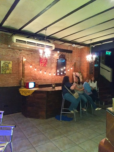 Los viernes hay karaoke. Es un bar que tiene una entrada con escaleras hacia abajo. No creo que si tenés silla de ruedas haya problemas si hablás antes con las personas que atienden, que son súper amables, para que te ayuden. Pero no hay rampa o ascensor. El bar está decorado muy sencillo, pero muy bien y moderno. La comida ayer tuvo varios problemas porque no esperaban la cantidad de gente que fue, había platos que ya no había o llegaban fríos pero se podía reclamar a las camareras. Como fui un viernes puedo hablar del karaoke: se le manda Un mensaje WhatsApp a la chica que maneja el asunto y tenés en una pantalla grande la proyección de los videos karaoke que hay en Youtube, te subís cuando aparece el nombre de tu canción. Si está en la plataforma lo podés ir a cantar tranquilo. No tienen una base de datos con canciones de ellos, podés seleccionar cualquier cosa que encuentres en la red con letra e instrumentación en video. Es un Punto súper a favor ya que no estás limitado a una lista especifica sino que podés usar lo que exista en la red, que es más amplio. La cerveza rubia para mí fue la mejor. Súper ligera y dulce. Tienen variedad de cerveza tirada, no una gran variedad pero está buena en general. Los precios son baratos, para la ubicación y el tipo de bar, creo que está muy bien de precios en relación a la calidad. La gente que te atiende es muy amable de verdad, se preocupan cuando algo no está bien y tratan de resolverlo. Hay mucha gente que a por primera vez y mucha más gente que va siempre, se nota mucho esa diferencia. No hay mucha cultura del karaoke en Argentina, pero es interesante la experiencia. Si vas por primera vez está bueno respetar las elecciones musicales de los demás y esperar tu turno con paciencia. Hay gente que no lo entendió y hacia comentarios a los que estaban cantando y usando su turno. Si vas, espero que respetes y juntos podamos contribuir a una...