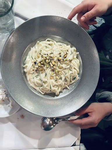 Read moreHicimos una reserva por cumpleaños, llamamos para avisar que estabamos en camino y no habian preparado la mesa! Llegamos y la mesa seguia sin estar armada! (Fuimos un lunes de clima lluvioso estaba vacio el local y aun con el aviso y la reserva, la mesa no estaba lista) Esperaba algo más sofisticado y aunque sea limpio, ya que la panera que nos sirvieron tenia toda la tela sucia impregnada. El pan duro y la crema para acompañar sin sabor. La atencion del mozo sin atencion, no escuchaba nuestro pedido y no era agradable bastante cortado.. Como comente era un festejo de cumpleaños, ya habiamos pedido la cuenta y estabamos levantandonos para irnos y aun no nos habian traido para brindar! Bastante falta de atención. Restaurante estilo bodegón de pastas, con cocina a la vista y decorado con vinos y paredes en pintura pizarron con recetas de comida. Si queres ir a cenar a Puerto Madero barato este es el lugar, precios accesibles en relacion al lugar donde esta ubicado con vista al río. Pedimos un plato de ñoquis con salsa de espinaca exquisitos, sorrentinos de muzza y jamon, lasaña malisima; solo carne, tenia en mente que incluiria verdura, jamon y huevo. Otro plato de sorrentinos a la pera, que no tenian sabor a pera, y milanesa de...
