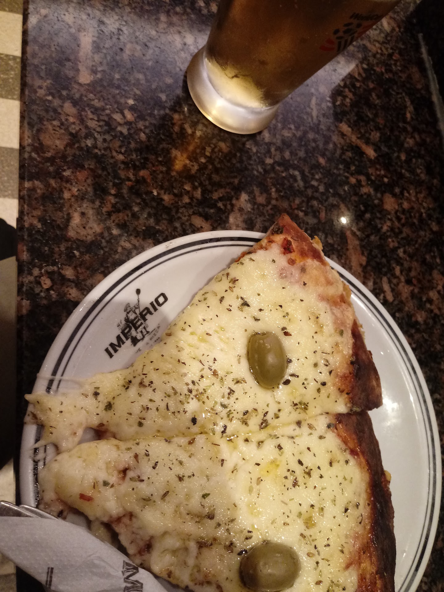 De repente, me topo con este hermoso y llamativo edificio "Imperio". Automáticamente me lleva al imperio romano (por su fachada imponente) pero también me conecta directame con nuestra característica pizza porteña con un adicional tinte modernoso y llamativo (azulejos color verde Petroleo y carteles de neon)