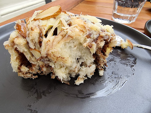 Read morePedimos un filtrado en v60 (huila con perfil a frutos rojos) excelente muy rico. Luego 3 bebidas con espresso, el café en si no estaba bueno. No creo que sea cuestión del barista sino del mismo grano porque la emulsión estaba super bien. El mocca sino me equivoco estaba hecho con chocolate y eso suma puntos. El latte y el flat no eran destacables por lo mencionado anteriormente. El budín no destacó. No recomiendo La sfogliatella estaba espectacular, crujiente con muchas capas y a una temperatura ideal. De mis favoritos junto a cannolo, para nada excesivamente dulce, crujiente pero sin sabor a fritura. Destacaba la textura de la ricota y la lima muy bien. El cornetto de jamón y queso muy bueno también, bien relleno y agridulce por el almíbar qué tenia el corneto en si. La música estaba genial hasta que pasadas las 13 horas parecía música de YouTube puesta así nomas. La música previa iba mucho mejor con el ambiente. El lugar hermoso y bien decorado. Atención destacable de la moza una reina para explicar. Y los baristas supieron orientarme genial para saber que café elegir para el...