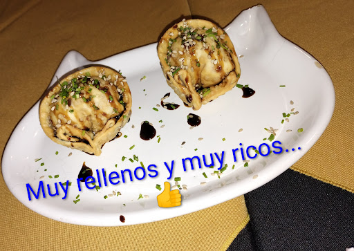En principio está tanto en un barrio como en una calle tranquilos. A los 20 min de acomodarnos trajeron unos gyosas rellenos de salmón, fritos, muy ricos. Ya que la compañía era amena y fuimos para pasarla bien, mientras charlamos vinieron las tablas de esta rica fusión de sushi japonesa/brasilera...así que no se sintió espera con hambre, sino disfrute prolongado...tengo los tiempos en que tardaron en traer cada tabla, con lo cual, si se calcula que uno come tranquilo, avisa al terminar y traen la siguiente,o sea no hay tiempos largos... El lugar es grande, lo cual permite armar mesas de familia o amigos sin quedar apretados con otros comensales. El lugar es mayoritariamente decorado en tonos oscuros y luz tirando a tenue, lo que permite más atención en la mesa y un ambiente más cercano a un pub. La atención fué cálida y cordial desde el principio, lo cual siempre se agradece cuando uno busca relajarse y pasarla bien. Nuestra cena duró una hora y media, comimos un promedio de 33 piezas cada uno, y me gustó tanto la presentación como el sabor. Muy importante: hay mucho salmón en la tabla, buena variedad de sabores y estilos, no tratan de que todo sea queso Philadelphia y arroz como suele haber quejas en otros lugares. El costo del sushi libre (incluye entrada, una copa de vino o bebida sin alcohol y postre o café) es de $28.000. Tienen opciones de vinos blancos para elegir. Al final de la cena, gastamos un promedio de u$s 22 por persona en el cambio al día. ...y me pareció simpático que los platos tengan forma de cabeza de gato. Gyosas 20:08 1er tabla 20:14 2da tabla 20:52 Postre...