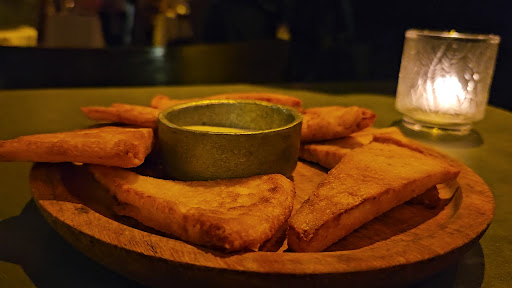 Fui con un amigo del barrio un domingo a la noche, nos recibieron y nos acomodaron en una mesa, enseguida llegó Carlos con dos vermuts, una sonrisa y un cálido saludo, seguido de unas “caricias de la abuela” (una masa frita con un humus de berenjena) para picar, que pedí dos veces porque me encantaron.