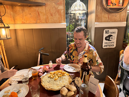 Read moreLa pizza es correcta (nos sobró una porción que nunca nos dieron antes de irnos). Pedimos empanadas que nunca nos trajeron, fuimos temprano de noche cuando no había mucha gente aún, así que no hay excusa para olvidarlo. Pedimos tiramisú de postre y realmente no era un tiramisú: se trata de un postre que debería bautizar "con sabor a tiramisú". Uno solo nivel de bizcohos de vainilla humedecidos de café untados con una crema (de esas que vienen en polvo y si les pones leche se forma una espcie de crema artificial) saborizada, espolvoreado con cacao. Osea, no tiene mascarpone ni aparato bomba, conclusión no es un tiramisú y por lo que sale no es más que un engaño. Les invito a googlear la receta o a cambiar el nombre del postre.