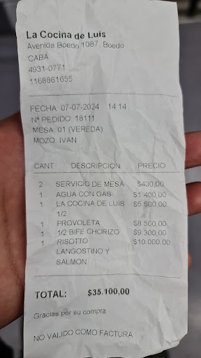 Lo de Luis fue un grato descubrimiento!! Desde la mañana, cuando nos reservo una mesita sin problemas por Whatsapp, supimos que era el lugar indicado. Fuimos tres amigas y comimos: entraña con papas(estaba tentada por la foto que ví acá y si, estaba así), matambrito a la pizza (delicioso), también con papas caseritas riquísimas y por último, un fuccili al fierrito... Los probé, caseritos, excelente. Probamos las rabas, súper frescas y ricas. Un vinito chico, una coca grande para compartir... Y de postre el tiramisú, recomendado. Por 6mil pesos cada una (incluida propina) comimos hasta reventar y las 3 nos llevamos viandita para el día siguiente. Punto aparte para la atención de los mozos. Super amables, te hacen sentir en tu casa. El lujo es vulgaridad dicen... En lo de Luis, el lujo no es necesario, ya que lo importante es la comida, la atención y el buen trato. Menos mal que nos habían reservado, porque estaba lleno !!!