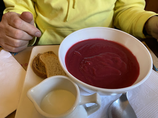 I was very much disappointed of the restaurant. Several of the main dishes were not available, although the card was not crowded with different dishes reducing the choices to latkes and fish. The excuses about the missing dishes were more lame than funny. The waitress told AFTER 20 minutes of waiting that the ordered borscht was not available anymore. AFTER 20 minutes!!! I fully understand that one, maybe two dishes might be out of stock for the day. But this requires then better communication and efforts to compense. The then-ordered vareniki were tasteless, with no flavor at all. And, paying with credit card was not possible. WHAT?! In 2022? No payment with credit card. 😱 I definitely cannot recommend the restaurant and will also definitely not eat...