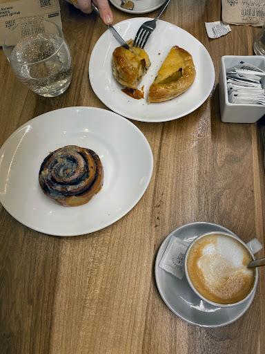 Read moreEstá muy bien puesto y la mercadería es semejante a la de Mar del Plata. El mobiliario nuevo incluye, en lugar de sillas, unos silloncitos donde los apoyabrazos se continúan en el respaldo. El resultado es que si uno se quita un abrigo NO lo puede colgar del respaldo del silloncito. No hay percheros, ni lugar donde ponerlos porque las mesas están MUY juntas. Los silloncitos tienen, en el lugar donde se apoyan las asentaderas, unas tablas de noble y lustrada madera. Desventaja para el cliente que debe soportar la incomodidad del asiento. Ventaja para el dueño que no tendrá que re-tapizarlas periódicamente por un lado y a la vez que logrará que los clientes no se queden paveando mucho tiempo luego de consumir sus viandas. Hoy 18/10/22 encuentro que las mesas están tan apretadas que es casi imposible pasar junto al extremo del mostrador. Allí además allí está la computadora donde las meseras anotan los consumos … en definitiva un muy pobre diseño de circulación. Me olvidaba, allí también hay un jarrón maceta que entorpece aún más el paso. Hoy 21/11/22 exquisitos muffins de frutos del bosque. Antes de ayer Boulevard de pastelera y manzana (medio cortado en la foto) y Roll de canela. Hoy estoy de noche y la música muy alta y a la puerta le podrían agregar aceite porque hace mucho ruido al abrirse. 8/12/22. Sigue bueno ahora en el 2023. Ahora (30 de mayo de 2023) MODO anda y parece que los descuentos se aplican. Sigo insistiendo sobre el lugar para pasar entre el extremo del mostrador (donde hay una terminal de registro de pedidos para las meseras) y además se puede sentar un comensal. No es adecuado, es muy estrecho y las meseras a veces debe hacer contorsiones para pasar (no hablemos de los comensales). Adjunto una foto donde se aprecia el pocos espacio entre una persona sentada en la barra y el JARRON INUTIL colocado en ese lugar. Ahora en la puerta hay un anuncio de que se acepta MODO, no con descuento. Hay descuento con la combinación MODO - Galicia. Con otros bancos creo que no anda. ¡De 20% de descuento, cambiaron a 10%! Está claro, las promociones se anuncian cuando empiezan pero NO...