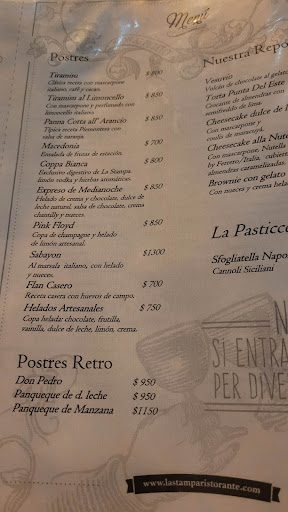 Read moreLa Stampa ya es un clásico porteño. En ella, todos sus empleados saben de q se trata “ser profesionales”. Con un trato absolutamente pulcro, gentil y educado. Al ambiente es una maravilla porque carece de gritos atronadores, de comensales imposibles. Y porque la música es perfecta. Nada de esas “músicas” q no son más q una declaración de ignorancia. Vamos al núcleo del asunto: la comida. La Stampa se luce especialmente con sus pastas. Éramos 3 comensales. Nos recibieron con una bruschettas y una copas de Ramazzotti, de cortesía. Todo estaba perfecto. Luego pedimos berenjenas y mozzarellas empanadas con pomodoro sobre ellas: un lujo. De primer plato, yo me pedí lasagne con funghi y mini albóndigas. Y mis amigos un risotto de funghi y una milanesa de ternera a caballo. Los 3 platos estaban impecables. No comimos postre. Cerramos la mesa con excelentes cafés. Y de cortesía nos trajeron 3 limoncellos.