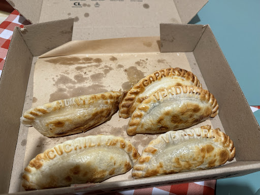Sólo probé las empanadas, no puedo opinar sobre la pizza aún. Las empanadas son muy buenas. Del tipo "congelada cocinada al momento del pedido", con un repulgue falso (están pegadas con los pliegues dibujados, no es un verdadero repulgue y por eso tienden a abrirse y chorrear ahí). Herederas del noble repulgue de los 90's. Son grandes y ricas, sobre todo las diferentes variantes de carne. Las que tienen queso suelen tener mucho más queso que lo otro... Por ejemplo ciruela, panceta y queso; cantimpalo, caprese, etc todas esas son puro queso, apenas "saborizado" por lo otro. Y dado lo líquido del relleno y las características del repulgue antes descriptas, si están calientes es casi imposible que no se abran en medio del repulgue y empiecen a chorrear. Además el delivery demora y también la entrega si las vas a retirar en días concurridos (igual las hacen muy rápido, el filtro no es la cocina, es el mostrador donde, dicho sea de paso, escasean las sonrisas. Igualmente me gustan mucho las empanadas de carne así que les seguiré comprando. Ahh, detalle más... Son caras, bastante caras. Aunque todo es caro últimamente, digamos que están dentro del precio del mercado. Recomiendo las de carne dulce. Las picantes pican, no sé si como para un mejicano pero para un argentino no van a...