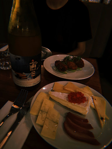 Read moreUna experiencia de vinos interesante. El lugar no abrió hasta las 21 en punto, había gente acumulada afuera esperando para entrar. Nos encontramos con un ambiente delicado y personal amable. Lo primero que nos comentaron es que la reserva era por turnos de dos horas (costumbre que dejó la pandemia que atrás y resta mil). Nos acercamos a una mesa, donde nos alcanzaron la carta y nos comentaron que de querer vinos debíamos acercarnos a la bodega. Nos asesoró personal específico en la selección del vino, muy atenta y cordialmente. Los platos no bajaban de los $10mil, pero ni la carta ni los camareros advierten de las diminutas porciones. Tal como vimos en TikTok, dos personas requieren 4 platos para poder cenar “bien”. Los sabores estaban bien, pero no sentimos algo que destacara o valiera el precio de la carta. 10 minutos antes de cumplirse las 2 horas, nos trajeron la cuenta sin que la pidamos, invitándonos a retirarnos. Me hubiera gustado que para los precios excesivamente caros que pagamos me hubiesen dejado quedarme un poco más, sobretodo teniendo en cuenta que quedaban mesas vacías tanto arriba como en la vereda. La experiencia sí fue interesante y el ambiente agradable, pero no volvería a pagar $45mil por persona para que me hagan retirarme a...