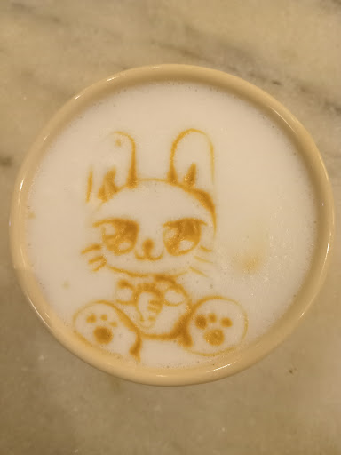 I had a really nice cup of coffee that not only tasted great but also looked super cute. The latte was smooth, well-balanced, and served at the right temperature. What made it extra special was the latte art—a little bunny holding a carrot, with big eyes, tiny paws, and lots of detail. You can tell the person who made it really put care into it. It made me smile before even taking a sip. A perfect mix of good coffee...