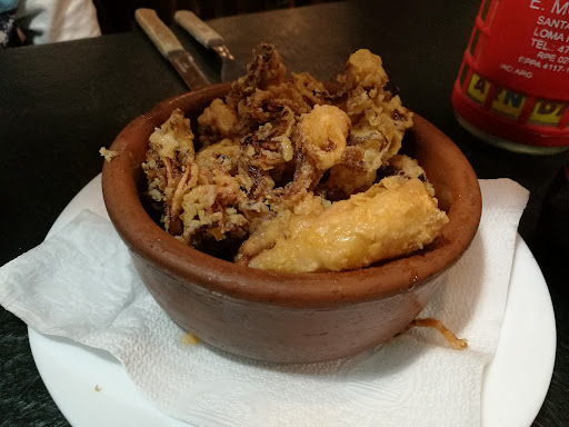 Buscando opciones para cenar ayer a la noche, pasamos mano por el Google Maps hasta llegar a un lugar de encuentros, hasta encontrar un salón de esos que llevan sus años en su respectivo barrio. En esa búsqueda encontramos una cantina de aquellas de club, de esas donde uno se sienta en familia o un día de celebración de campeonatos: Lo de Fito. Ubicado en Mercedes 4280, desconocemos y olvidamos preguntar si pertenece al club Gimnasia y Esgrima de Devoto; tienen un largo salón que cumple toda la expectativa de la ambientación de cualquier cantina de barrio o de club, da igual realmente. Salón lleno, platos que iban y venían; visuales que nos inspiraron a no desertar de la opción, todo lo contrario, te invitaban a pasar y quedarte. Nos ubicamos y empezamos a ver la carta que, sin duda, es muy variada y con muchas tentaciones. Se nos adelantó la moza a ofrecernos los platos del día o sugerencias: uno era más tentador que el otro, pero a supuestos nuestros, fuimos por el Bife de Chorizo Super Club; supuestos de que era el jugador predilecto de la casa, no sin primero sacarnos las ganas de algo de mar. De entrada unos calamaretis que, si bien eran pocos a mi gusto, ayudaban en la espera y se sentía el crocante de su preparación, bien tiernos, muy ricos. Sorprendentemente no esperamos más de cinco minutos de terminar, que ya teníamos al goleador en la mesa: Morrones asados, cebolla asada, puré de batata y calabaza asados, papas fritas, una provoleta y el bife de chorizo a caballo; todo acompañado de una salsa de mayonesa, criolla y chimi. Repartimos y comenzamos el partido, con unas papas muy bien logradas y todo lo demás haciendo una gran compañía al goleador, un bife de chorizo grueso, bien jugoso y, lo que más me sorprendió para el lugar, muy tierno, casi para cortar a manotazos de foul. Hubo tiempo extra para un Tiramisú con buena cantidad de mascarpone y un rico sabor tendencioso al café. A mí gusto, quizás le faltaba un poco más de dulce, pero hizo un buen partido para terminar de festejo.