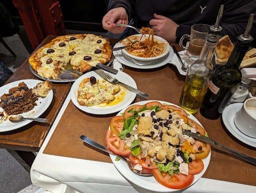 This was an impromptu stop for us for lunch. Our waiter was really nice. We were planning to order separate small pizzas, but he suggested getting a larger one with half mine and half his. I thought the Hawaaian pizza was very good. The crust was delicious, there wasn't an American style red sauce, but it was flavorful. The other pizza was... Different. It had all kinds of toppings on it. It was very filling. Not bad... But not as good as mine. I would go there again, but try the plate of the day instead. You have to ask for it because it's on the wall, not...