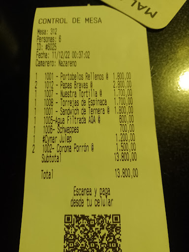 Read moreNunca un nombre más apropiado para un lugar. Por los precios que manejan uno esperaría que la experiencia sea excelente o al menos buena. Eramos 6 personas en la mesa y todas coincidimos en que no volveríamos. Yo particularmente pedí un sandwich de ternera el cual estaba salado y un trago, el "Afrodita", el cual no pude tomar por el mal olor que tenía el vaso (algo con lo que tb coincidimos las 6 personas en la mesa). 2 tragos más de la mesa fueron devueltos ya que estaban aguados, y cambiados por 2 cervezas Coronas que no fallaron. Las órdenes fueron mal tomadas, un mesero se acercó a decirnos que habíamos pedido un trago, señalando con el dedo y de mala manera a la única persona que estaba tomando agua en la mesa cómo la culpable de ese pedido que nunca fue hecho en la mesa. La cuenta mal cobrada (por favor, revisar el ticket antes de pagar, el de la foto fue corregido, pero habían cobrado 3 cosas de más). Lo único para destacar es la mesera que sirve el agua al principio y el mesero que trae los tragos. Después, nada más para decir. Definitivamente no volvería y tampoco...