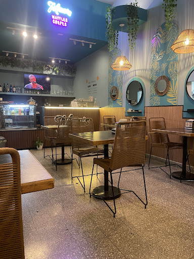 Read moreEl lugar es chiquito y al principio quizás no te llama la atención pero cuando estás ahí te das cuenta lo increíble que es. La atención es espectacular la cocinera y camarera super amables se nota la dedicación todo realizado en el momento aviso esto porque hay que esperar pero vale la pena. Lo único que podría hacer mención para cambiar es la música quizás un poco más baja y música más funcional para los que no nos gusta el reguetton pero bueno eso ya es un tema de gustos. En síntesis les super recomiendo ir a probar los waffles que son espectacular igual que el café y los licuados. En precio ayer 9/12/23 gastamos tres waffles gigantes un licuado un café doble y una...