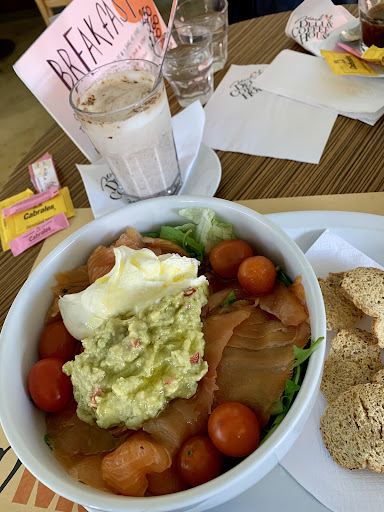 Nice coffee and restaurant. In some way cozy with a combination of sofa, tables with chairs and one side couch and table. It also has an outdoor patio. We didn't know this place located one block away from the overcrowded ones, in a corner. We went for a coffee, and a nice attendant brought us an interesting menu. Several options in sandwiches, salads, hamburgers, pastries, and some more. Vegan and vegetarian options were available. The combinations (ingredients) of sandwiches and salads were quite original. Clean, family oriented, good customer service, not super noisy, and affordable. We left very satisfied with our food and service. Big...