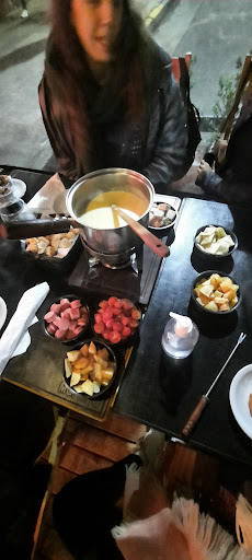 Pedimos el fondue 4 quesos, la verdad re decepcionados, nos trajeron salchicha fría, pollo, cantimpalo en cubos, papas, tomate cherry, lechuga, ravioles y crutones , eso sale $4600. En serio 4600 por eso? Es una locura. El total de nuestra cuenta era $5740, esto incluía un vaso de vino blanco, un agua y $400 por cubiertos, cosa que jamás en mi vida había visto que cobrarán cubiertos, lo pagamos con tarjeta, la cual es de Estados Unidos, pero esta tarjeta en especifico no tiene cargo de tarifas en países extranjeros (nos aseguramos de eso antes de venir). Cuando entramos a la cuenta del banco vemos que se cobra $54 (dólares), lo cual es alrededor de 10mil pesos, según lo que habíamos cambiado en agencia de viajes anteriormente ese día. O sea qué hay unos 5mil pesos que se han esfumando, porque cuando entro a preguntar si por ahí mercado pago lo había cobrado, la señorita que atiende me dice que no, que mercado pago les cobra a ellos, no a nosotros. Me quiere reembolsar el dinero, a lo que le digo que no, porque no somos ese tipo de cliente que quiere comer de gratis, porque si, nos comimos lo que nos gustó del plato (tomate, cantimpalo y un poco de pollo), le digo que entonces no tiene sentido, que vamos a pagar igual aunque el plato no valía lo que nos cobraron, ahí se pone defensiva. La verdad no hicieron pasar un mal rato, nos robaron 10mil pesos y nos fuimos re calientes porque comimos una comida que no valía la pena y encima mal tratados. No lo...