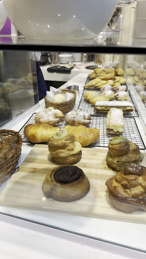 Nos sentamos en el salón pero también tienen un lindo espacio con mesas y sillas afuera. La atención fue espectacular, quiero destacar a Orne que con su excelente predisposición y calidez hizo que tuviéramos una gran experiencia. Dato, acá van a encontrar café de Segafredo (tope de gama) pero torrado, no tostado. Pedimos un Té Verde que vino con una pava que rendía para dos tazas (tienen tazas de buen tamaño, un detalle súper destacable); y un café con leche, a mi acompañante el café no le gustó. Trajeron las infusiones con vasitos de agua. Para comer, probamos el chipá (pan de queso parmesano) que estaba muy bien; una medialuna de jamón y queso que cumplía, o sea la medialuna estaba muy rica y calentita pero el relleno estaba frío además tampoco se veía como en el mostrador; y una porción de cheesecake de pistacho (Clásica torta de queso al pistacho con pistachos caramelizados), esta última nos encantó y celebramos que usen pistacho de verdad, volveríamos sin dudas! Igualmente la porción nos pareció pequeña en comparación a otros lugares. Nos dieron para probar el helado de pistacho y estaba muy rico, nos quedamos con ganas de llevar más cantidad y probar otros, lo bueno es que tienen gustos sin TACC y alguno que otro vegano. No faltará oportunidad. Les dejo fotos y videos para que...