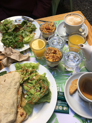 Siempre es una buena opción ir a Matteo. Fui a conocer la nueva opción de brunch que tienen para dos personas y es increíble la cantidad de cosas que incluye. Cuenta con 2 infusiones (café mediano o té) no hace falta elegir uno de los dos, puede ser uno y uno, dos vasitos de jugo (en este caso elegimos de naranja), dos mini yogurt (que estaban ricos), 1 porción de tostadas (venían 3 rodajas, estaba muy rico), 1 porcion de torta (elegimos una porcion de lemon pie), 1 bruschetta a eleccion (habia dos opciones, palta y huevo poché o rucula y jamon crudo, elegimos esa opcion, en la foto mi compañero ya se habia comido todo el jamon crudo 😂), 2 rodajas de budin (elegimos una rodaja de banana y nuez y otra de cacao y cafe, habia opcion de limon, de naranja y de manzana tambien), 1 scon de naranja (muy rico) y un sandwich a eleccion (en este caso fue muy dificil elegir porque habia muchas opciones pero nos decidimos por la ciabatta de pollo que venia con palta, mayonesa y cebolla, muy buena, excelente opcion). El sanguche y la bruchetta venían con una ensaladita de lechuga con un aderezo super rico y suave. La verdad quede sorprendida, no pudimos terminarlo porque era demasiada comida pero nos permitieron llevar lo que nos sobro. El total de este brunch es de $2600, no me pareció para nada caro. Es de lo mejor que tiene Caballito para ir a desayunar, almorzar o merendar. En su cuenta oficial de Instagram @matteobuenosaires tienen una historia destacada con su menú. Super super super...