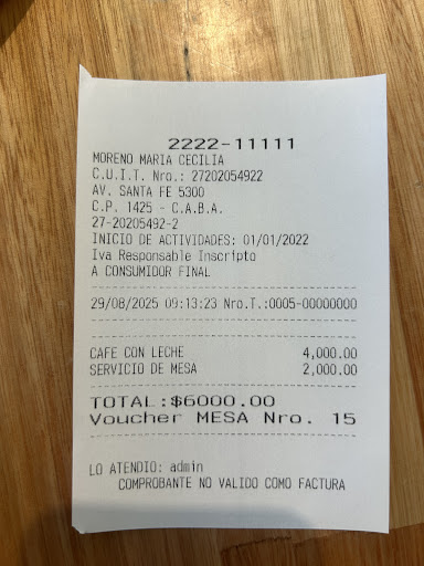 Read moreSoy clienta,muchas veces me siento a tomar y comer Hace unos días me pasó que cuando me trajeron la cuenta me habían cobrado $1000 de servicio de mesa Inexplicable ,nunca me pasó ,en un café . ,el servicio de mesa se cobra en los restaurantes y además tiene que estar especificado en la carta Al otro día,fui a comprar por mostrador y respetuosamente pregunté si seguían cobrando el servicio de mesa y me dijeron que si..,que lo cobran porque la gente no deja propina,con lo cual me pareció peor la explicación,ya que la propina no es obligatoria.,mucho más irrespetuoso el chico que ante mi queja me dijo que en el barrio había otros lugares para ir...Me pareció súper irrespetuoso.Con lo cual perdieron un cliente ,ya noire más.Geberslmente iba 3...