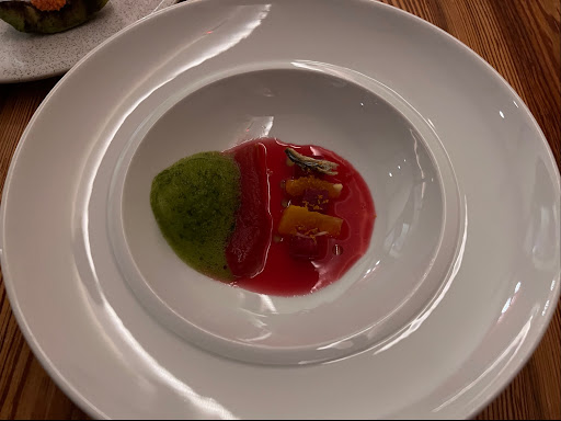 Read moreI am not a food critic, but I want to give a review to the food I had: Starter (Snacks): Best was the Karlsson soup. Ocoo Avocado and Cacio e pepe stone were OK. Did not like the thin Pizza. It tasted like Za'atar which was very strong Block A: Spiced tomato tart, peach sorbet…: It was a good choice for the first course. I liked the light refreshing taste. Block B: Cantonese tongue salad: It was good, the tongue taste was tender. Block C: I went with the classic beef tartar, but I did not like it and could not even finish it. The taste of the tomato was really strong and dominant. Sweetbread was dry. Predessert was good. Dessert: Pineapple, avocado, lime,…: It was just OK. It needed s little bit of more taste. I think it is better to add to the pineapple portion. The service was good. Sabrina, the waitress was very nice snd also informative. Overall, my experience was good, but I think the chefs can go for...
