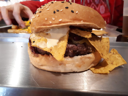 Read moreFui hoy por las reseñas pero no fue lo que esperaba en muchos aspectos. Pedimos 2 Triple X sin Ketchup Curry, pero al llegar a casa ambas hamburguesas tenían Ketchup Curry, una más que la otra. Las hamburguesas eran enorme y sí, satisfacían el hambre, tenían buen gusto y los dedos de mozzarella cubiertos por panceta frita fueron un toque suculento a las hamburguesas, pero la carne y el pan estuvieron por debajo de mis expectativas en cuanto a gusto. El lugar me pareció reducido y sumamente oscuro por lo que decidí pedir la comida para llevar, el lugar era tan oscuro que era perturbador como la gente de afuera pegaba sus caras en el vidrio para ver si estaba abierto o si había alguien adentro del local, y no me agradó que en un lugar así hubieran permitido el ingreso de un perro de tamaño mediano que ladrara, fue ensordecedor y ya era suficiente con la música... pudieron sugerirle que se sentaran con el perro en las mesas externas. Afuera a pesar de tener mesas sobre la calle limitadas por cercas, no me gustaron las cercas que colocaron, parecían cercas para retener el ganado en el campo y me hacían sentir inseguro por estar a merced de los vehículos pasando al lado de tu mesa con cercas tan poco visibles, ademas estaban los motorizados de las empresas de delivery ahí, el ruido de los autos y en especial del restaurante desagradable de al lado. La atención fue entre normal y displicente. El empaque y la presentación de los productos estuvo impecable. Y los precios me parecieron muy razonables considerando que las hamburguesas...