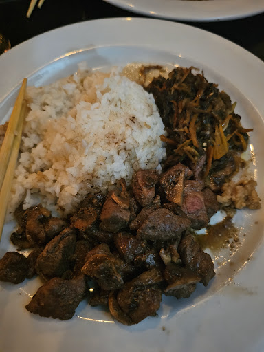 For my dish...Ugh. The "teppayaki" "Ribeye/ojo de bife". I am so angry honestly; it was NOT even CLOSE to a ribeye. It was bad quality, cheap, chopped up beef pieces. Tough, heavily overseasoned with ONLY soy sauce, it was like a salt lick. I could not eat more than 4 pieces max. You can't look at this photo and tell me that this sh!t is ribeye.