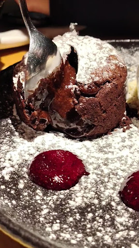 De postre pedimos el volcán de chocolate con helado de crema, realmente 100/10, espectacular.