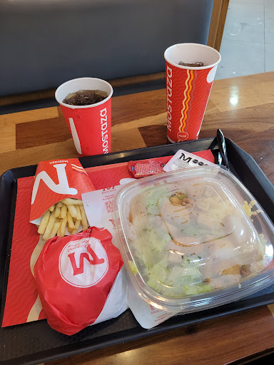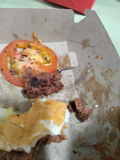 La comida estaba fría, con mal aspecto, no sabia nada bien, mal servída sin servilletas, ni envoltura la hamburguesa creo era hamburguesa o un pan feucho con carne, el pan frío relleno con una rueda amorfa no se de que porque no sabia a nada, de nada parecía carne pasada por agua, sin olor, ni color de ningún tipo, ni aderezos, no habían. La soda sin gas y la mitad del vaso era puro hielo, sin tapa, sin pajilla.