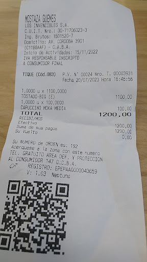 La chica que me atiende (muy amablemente y copada) me dice que si quiero para llevar o para comer en el lugar... A lo que le respondo que quiero comer en el lugar (porque a eso fuí).