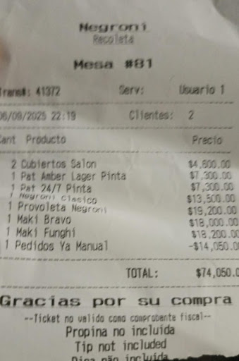 Read moreMy rating for this place is entirely due to the treatment. My bag was stolen while I was sitting at the Negroni. Even though no one passed by us and no one saw anything, someone stole my bag in a very professional manner. Before I noticed, they had already used my credit cards and therefore I had to cancel my cards immediately. During the time I was supposed to go to the police station and give a statement, the manager of the place kept me and said you can't leave without paying. They wanted me to reactivate my cards and they waited for me to pay via QR. I tried in front of them but it failed, my bank didn’t accept it. They said that it would not be possible to go without paying for half an hour. Finally, they took my phone number and released me on the condition of paying later. But even though they saw that this happened to me in their restaurant, they did not approach me in a helpful manner at all and...