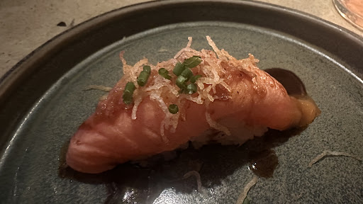 Started with a small plate on the house that was very tasty. We ordered the Maracuya tiradoto which was excellent and very flavorful — good enough to share between two people.