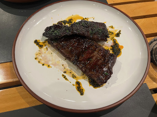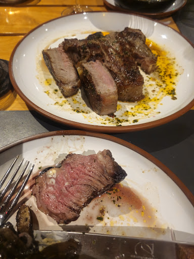 A todos os brasileiros corram deste estabelecimento. Começando pelo cardápio de bebidas: Vinhos super faturados, horas antes do infortúnio de vir para este restaurante tomei um espumante Baron B no almoço por cerca de 14 mil pesos (em outro restaurante e cerca de 75 reais em Dezembro de 2023) e aqui estava 39 mil pesos (210 reais) a disparidade com outros estabelecimentos estava enorme para todos os vinhos do menu, depois de ir a mais de 10 bons restaurantes aqui em Buenos Aires é a primeira vez que vi uma diferença dessa magnitude. Pedimos duas empanadas que vieram geladas por dentro como se estivessem congeladas e tivessem sido requentadas no microondas. Não devolvemos pois estávamos com fome. Pedimos dois Ojos de Bife, um na versão "normal" e outro na versão "regenerativa" que seria com vacas criadas de uma forma melhor segundo a atendente e algumas guarnições (cogumelos, batatas, ovos e legumes). A Argentina tem carnes maravilhosas mas infelizmente em todos os outros restaurantes que fui não acertavam quando pedia ao ponto (interior rosado e quente) e sempre mandavam mal passada ou ponto pra mal passado (rosado mas com o miolo azul e morno) então passei a pedir passado o ponto mas sempre reforçava que gostaria de que o interior fosse rosado, aqui não foi diferente. Resumo: chegaram as duas carnes pedidas no mesmo ponto mas uma veio ao ponto (de fato o meu objetivo) e a outra veio bem passada, dura e não dava pra comer. Pedi para devolver a carne que veio bem passada (segue foto) e a garçoa se recusou a levar o prato e quis discutir comigo que aquele era "passado o ponto", mesmo tendo um outro corte pedido no mesmo ponto e os dois estavam claramente diferentes (foto em anexo)! Ela Voltou a mesa 3 vezes para tentar argumentar isso e mesmo tendo pedido para levar o prato de volta ele lá permaneceu até o final do jantar, o qual também não foi bom, pois o único corte de carne que dava para comer estava sem gosto (sem sal ou tempero) e as guarnições estavam horríveis (cogumelos torrados com gosto de queimado e legumes sem tempero), sem contar que no momento em que pedi para devolver a carne a garçoa parou de olhar para nossa mesa. Terminamos o mais rápido que pudemos e pedimos a conta, depois de contar as notas e aguardar uns minutos para que alguém viesse conferir a conta (ninguém veio) levantamos e fomos direto a saída, nesse momento fui seguido proximamente pela garçoa até a saída (exatamente atrás de mim) enquanto contava as notas de forma agressiva e como se não fosse pagar (devido a hiperinflação paguei com 44 notas de mil pesos) e quando terminou de contar parou de me seguir e não se despediu. Por último e não menos importante saímos com cheiro de fumaça impregnado no nosso corpo e roupa, o local é fechado e ao assar a carne a fumaça permeia todo o...