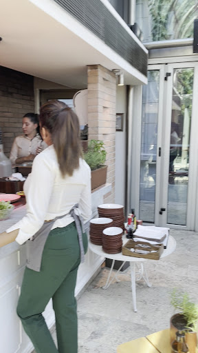 El restaurante dispone de un área al aire libre, con una barra para ocho comensales y unas 10 mesas distribuidas en el jardín. También tiene un espacio interior dentro de un jardín de invierno, que lamentablemente cuenta con una acústica muy deficiente, algo que afectó nuestra experiencia.