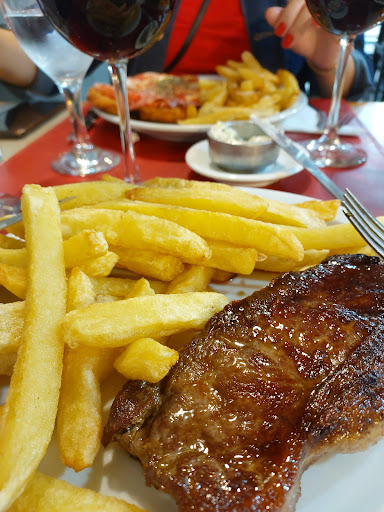 Pedimos 2 pratos, um bife chorizo com batatas fritas rústicas e um filé de frango à parmegiana com batatas. Ambos muito bem feitos, com a preocupação do atendente em explicar e atingir o ponto da carne que queríamos. Pratos deliciosos, muito bem servidos para 1 pessoa.