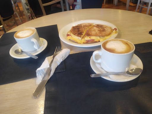 Read moreFui a tomar un café con leche con torta, excelente calidad la porción de cheesecake y muy buena la atención de la camarera, por eso le dejé propina. Pero presencié un acto de egoísmo y falta de solidaridad que el encargado del local apoyo así como también otra camarera que se metió en mi conversación con el encargado diciendo "no se por qué hacés tanto lío si no es tu problema". La respuesta sería "porque quiero una sociedad mejor!". Lo que presencié fue que una señora mayor ingresó al bar y se sentó en una mesa de dos con sillones individuales. Cualquiera a esa edad querría comodidad. Se le acercó un hombre joven y le dijo que se retirara porque él estaba ocupando esa mesa, pero que estaba unos minutos charlando con alguien de otra mesa. Yo ya estaba allí cuando la señora entro, y el hombre hacía unos diez minutos que estaba en otra mesa. La señora buscó sí había otra mesa con sillones cómodos, no había, sólo dos mesas libres con sillas comunes. Entonces se dispuso a irse, pero ya en la puerta de salida vio que había pedido la cuenta una pareja sentada en una mesa con sillones. Se quedó esperando a que se fueran. Me paré a decirle al hombre que estaba dejando la mesa libre pero no la dejaba ocupar por otros, que me parecía una desconsideración lo que estaba haciendo con la señora mayor. Me dijo que yo estaba equivocada y siguió en la otra mesa hablando con otro hombre. Fui a pedirle al encargado del local que intercediera en favor de la señora mayor, pero lo hizo en favor del hombre joven. Pedí que me cobraran y me fui. No...