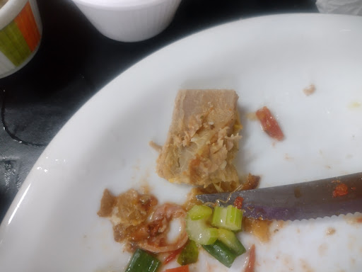 Cuando nos trajeron los platos (no tardaron más de lo usual, aunque la guarnición llegó un poco antes de lo que debería y había empezado a enfriarse para cuando llegó la parrillada) algunas de las carnes (especialmente el matambre) estaban frías. Nos dimos cuenta luego de que no había chinculines, y cuando le preguntamos a la moza nos informó de que ya no quedaban. Debería haber avisado...