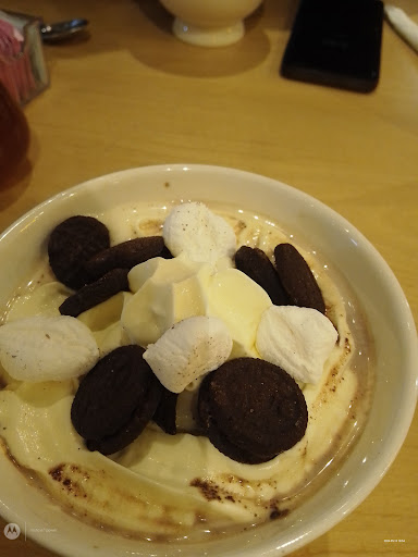 Al llegar todo bien, el ambiente lindo, pero en cuanto nos empezó a atender el chico, nos tomó el pedido, le consulté cuáles eran las "especias" que traía el chocolate caliente ñato y me dijo "mmm no sé, crema.." bueno. Después le dije que quería un roll de chocolate, mi novio pidió otra cosa. Vuelve y me dice que no le quedó el roll, ok, no hay problema, le pedí la carta de vuelta y no tenían más.. le dije que capaz que el QR del servilletero tendría el menú a lo que no sabía, "probá a ver si es.." (evidentemente ni sabría). Le pregunté el tamaño de las "torrejas" y me dijo: "como un pan lactal". Le pedí una cookie. Al rato llegan las bebidas. El café con leche de mi novio estaba súper insulso, mi chocolate en una taza cachada, era recontra espeso, bastante intomable y cuando me puse a tomarlo tenía como cosas duras que no pensaba encontrar (eran las famosas especias que nunca supe qué eran porque no me supieron decir) pero encontrarlas sin esperarlas me dio asco por pensar que podría haber cualquier cosa caída ahí adentro. Le trajeron a mi novio la torreja y era bastante más grande que la rodaja de pan lactal que dijeron. Nunca trajeron mi cookie hasta que después de un buen rato uno de los 3/4 que atendían se acercó y se la tuvimos que pedir. Era un masacote, medio dura. No era rica. La verdad no vuelvo más. El personal se nota que no está informado de lo que venden, la comida no es rica... No sé de dónde salen todas las buenas reseñas porque hoy literalmente me arruinó la merienda que pensaba tomar... (La foto todavía ni tenía la cookie). Nos fuimos yo sin terminar ninguna de las dos cosas, pagando al pedo por una comida que no valió la pena.