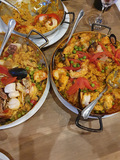 Pedimos varios platos de los cuales había paella tradicional, valenciana y la de camarones. Esta última no tenía tanto sabor como las otras pero eran ricas, no zarpadas, la de pinamar era zarpada. Yo fui por 2 cosas, para pedir un plato q habia comido en Paxapoga Pinamar que era lenguado al roquefort con puré duquesa y el panqueque al rhum. El lenguado tenía buen sabor, el plato era muy rico (no estético, hay foto), el puré no estaba preparado en conitos como se hace el duquesa real, si estaba gratinado!! Estaba bien. Otros amigos pidieron carne al champiñong y carne a la mostaza, uno era con puré y lo trajeron con papas y el otro se pidió bien cocido y lo trajeron jugoso, se reclamo ambas cosas, la carne era sabrosa pero bastante dura lamentablemente. El vino q elegimos fue Don Nicanor y estaba muy bueno. Para el postre, fuimos con mucha expectativa del panqueque el rhum y no tenían (desilusión)... por lo q decidimos pedir natillas, postre bayles, macedonia, panqueque dulce de leche. La natilla era realmente fea, nos explicaron q era Asturiana y no Catalana, o CremeBulee pero la consistencia era muy líquida y con muchísima canela q no lo aclaraba en la carta y había gente q no le agrado. El Bayles q venia con crema la misma tenía gusto artificial como si fuera de pomo, no estaba muy bueno. Los postres los mejoraría, la natilla sin duda directamente no la ofrecería (es la última foto) o cambiaría por la Bulee. Volveríamos por la tortilla creo o probar otras cosas tal vez. Precio por persona...