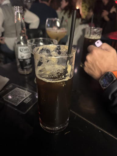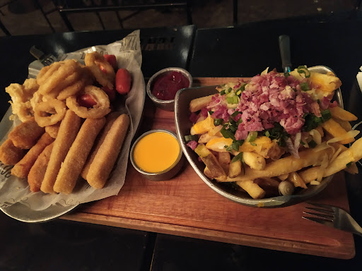El lugar esta bueno, es muy amplio, tiene lugar afuera, en planta baja y primer piso. Mesas altas, bajas y tipo sillones. Parece que es un buen lugar para festejar cumpleaños, había varios ayer sábado por la noche. O también para ir en grupo de amigos. Pedí una chesseburger doble ($12800) venía con panceta, y una porción de papas. Más una pinta de cerveza scotish ($4700). Los medallones de carne estaban un poco duros, medio "masacote" y la carne con bastante grasa o tendones, se sentían al comer. Quizas la carne tenía una sola pasada por máquina de picar. La panceta estaba en una sola feta, muy ancha y sin cocinar mucho, por lo que se sentía media chiclosa, y en una burger eso no va. El pan y el cheddar estaban normal. Las papas fritas eras caseras, la cocción estaba bien, sin chorrear aceite, asique eso es destacable. La cerveza era rica, le faltaba un poco de espuma para mi gusto, pero eso depende de como la sirvan. La música muy fuerte, estabamos cerca del parlante, sí, pero estaba muy fuerte para el tipo de bar que es, que no es bailable digamos, sino para reunirse con amigos y charlar. Estabamos en el primer piso, tiene una vista hacia la esquina, con una barra para sentarse, y esta abierto, sin ventana. Para ahora el verano ese lugar para sentarse esta bueno. Pero lo fuerte de la música nos hizo movernos para otra mesa. En cambio, en planta baja y afuera no estaba tan alta la música como arriba. La atención de los mozos fue amable. Los baños estaban limpios, las canillas para lavarse se comparten entre los dos baños (H+M). Los precios en general estaban bien...