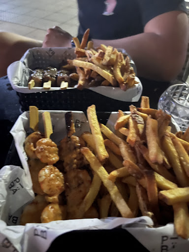 La comida demoró 30 min aprox, nos cayó muy mal, pedimos los pinchos de camarones y los de molleja, la molleja estaba cruda, le faltaba limón, las papas casi todas quemadas.