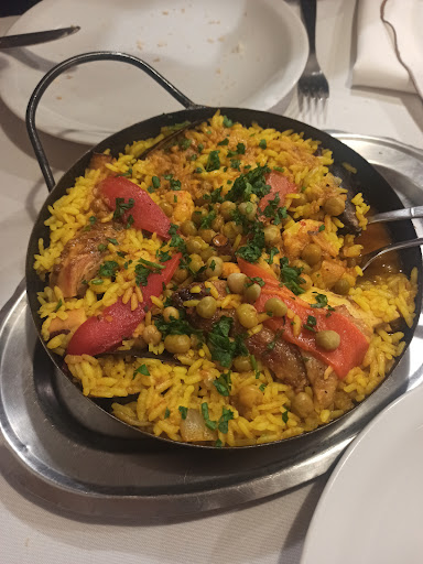El lugar es bastante tradicional. La carta no me pareció demasiado variada pero tiene todo lo que no puede faltar en un restaurante español: tortilla, rabas, paella, pulpo, etc. La atención no diría que es mala pero sí me pareció un tanto particular; apenas llegamos nos trajeron la carta y los panes pero después tardaron bastante en venir a tomarnos el pedido y hasta tuvimos que llamar nosotros al mozo. Como entrada pedimos tres porciones de rabas. Estan ricas pero tampoco eran las mejores que comí. Como plato principal pedí una paella para compartir. Era la porción grande y la compartimos entre 3 pero depende mucho de cuánto coma cada uno porque a mí se me hizo bien la porción y a otro de mis amigos le pareció escasa. Algo que me parece bueno destacar es que nos preguntaron si queríamos la paella con o sin pollo, cosa que nunca me había pasado y, otra cosa, es que tenía trozos de pulpo. Me gustó; estaba rica pero personalmente no es de las mejores que probé. Hay otras opciones si uno no quiere comer pescado y mariscos como por ejemplo milanesas o costillas de cerdo y son porciones bastante abundantes. Recomiendo reservar porque no es muy grande el lugar y se...