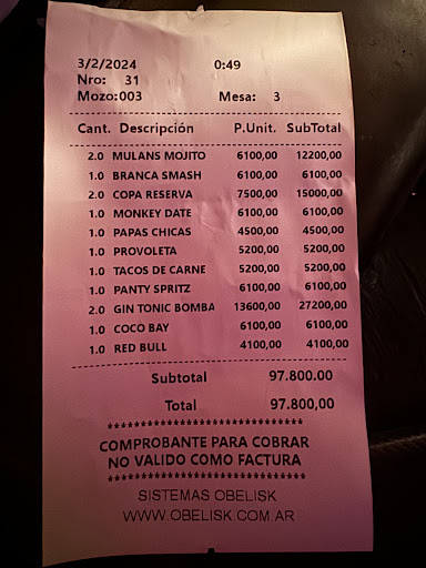 La atención, el punto SÚPER débil: reservamos a las 9. Se nos presentó un camarero buena onda, y nos tomó el primer pedido de 2 tragos y 2 entradas. A partir de ahí nos atendieron 4 personas durante toda la noche, trayendo mal los pedidos de comidas, dejándonos la tarjeta de crédito con el ticket de otra mesa... Cero comunicados entre ellos. Las papas que eran rotas con alioli las trajeron fritas con cheddar, y terminaron tardando media hora en remendar el error. Como la gota que rebalsó el vaso, para cuando terminamos las papas (que tardaron por su culpa) quisimos pedir un plato para compartir, nos dicen "ah no, la cocina cerró a las 10, ya no sale ningún plato". Si yo me siento a las 9 y: la cocina cierra a las 10 me traes un plato mal y me lo remendas con demora de media hora Me lo tenés que avisar apenas me siento o incluso cuando apenas te hago el primer pedido. La excusa fue que "mucha gente reserva a las 9", lo cual obviamente no alcanza para que no puedan hacer el comentario a todos los comensales.