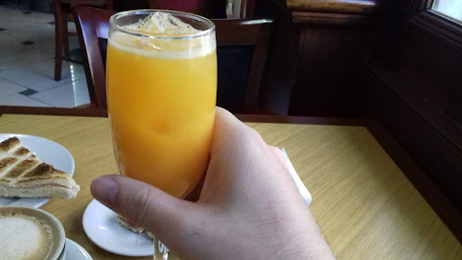 Estaba llendo a uno de los lugares que me gusta cuando noté horrorizado que fue convertido en un restaurante. El havana en frente de ffyb te pide hacer el pedido en la caja. Algo absurdo para una cafeteria que se supone se caracterizó por su comodidad. Empezé a caminar para buscar donde desayunar. Y llegué a punta cuore. El servicio es bueno. Tiene ofertas que incluyen más que café y medialunas. Por ejemplo yo me pedi el clásico que por $300 me ofrece un buen café con leche o té si lo preferís, masitas medio tostado y jugo de naranja. El detalle del agua tónica está presente. Y la copa de jugo tiene su gracia considerando que venden cerveza. El un entorno cómodo y tranquilo. Creo que es un error que de lo mismo ir a un café o a un restoran. Y por eso cuando lugares como éste separan bien los negocios para ofrecerte un menu para comida y otro de desayuno en mucho mejor. Espero que esto inspire a que aparezcan nuevas cafeterías que se dediquen a eso y no imiten a Mc Donals o peor a starbucks ya que si queremos pedir en caja vamos alli directamente. Por eso la comodidad y atencion al cliente son mis mejores criterios para dan mayores puntajes a los lugares que visito.