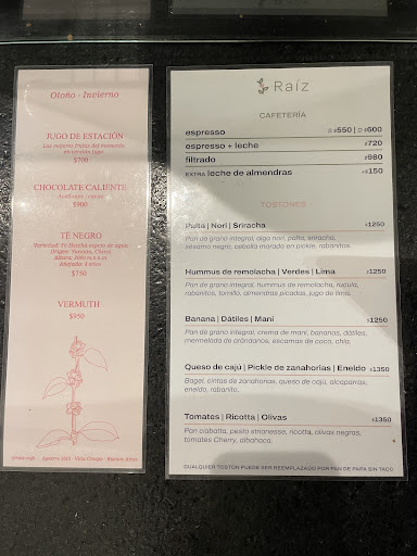 📋 Pedimos: ☕️ Espresso + leche $720 🍫 Chocolate caliente $900 🍰 Torta de bizcochuelo de lima con crema de frambuesa $1300 🥑 Toston de palta, nori y siracha $1250 🥐 Medialuna