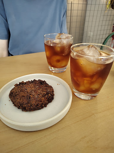 Read moreFuimos a conocer esta cafetería con bastantes expectativas porque estábamos al tanto de que saben mucho de café por su dueño y porque vimos por Instagram algunas opciones tanto de bebidas como de comida que se veían interesantes. La onda del local es minimalista, desde el diseño hasta la carta. Personalmente el diseño me pareció un poco impersonal y vacío, no me invitó a quedarme un largo rato como me gusta hacer. Me dió la sensación de ser una lugar más de estar al paso. En cuanto a la carta, me pareció que el intento de ser simple juega en contra y sale mal porque no se entiende bien lo que ofrecen. Tienen una carta con bebidas calientes que no se pueden pedir frías (esto yo al menos no lo ví aclarado) y otra carta de temporada con opciones frías pero que no todas tenían café en sí (ejemplo: una era una maceración de cáscara de café). Justo quería tomar un simple flat white frío pero me quedé con las ganas porque en sí sólo ofrecen "café con leche" caliente y sólo una de las opciones frías se podía pedir con leche, pero escapaba de la simpleza que quería en el momento. En general toda la carta de bebidas de temporada me resultó algo cara (alrededor de $850 por una medida bastante pequeña de bebida) y parecía más propia de coctelería. El cold brew que pedimos estaba rico pero era demasiado el hielo que tenía y poca bebida en sí. Sobre la comida, la carta de opciones saladas se veía más interesante pero al menos yo no entendía cuáles opciones eran veganas porque no tenían aclaración o loguito. Y sobre las opciones dulces, de pinta no se veían nada tentadoras (salvo la carrot cake). Para darle una oportunidad pedimos una cookie de chocolate picante que al morderla era una piedra; no estaba vieja sino que parecía pasada de horno, estando además de dura bastante seca. Al comerla se le caía todo el ají molido que tenía arriba y que la caracterizaba. No volvería pero no porque me haya parecido un mal lugar, simplemente no es mi estilo...